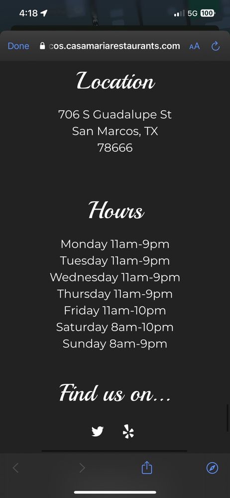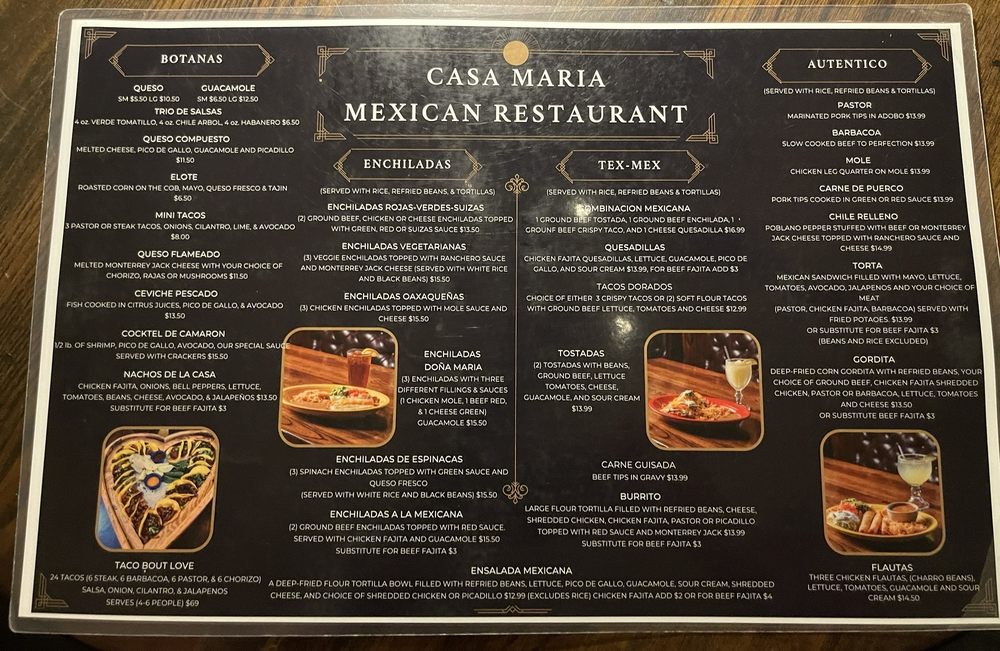 Casa Maria Mexican Restaurant and Bakery in San Marcos, TX offers a unique blend of Tex-Mex and Mexican cuisine in a casual yet classy setting. With a wide range of gluten-free and vegetarian options, this restaurant caters to diverse dietary needs. Specializing in Mexican pastries and pan dulce, Casa Maria is a must-try for dessert lovers. The extensive menu also features specialty cocktails like La Adelita and El Minero, adding a flavorful twist to your dining experience. Customer reviews rave about the vibrant atmosphere, attentive service, and authentic flavors of the dishes. Whether you're craving traditional Mexican fare or looking to indulge in decadent pastries, Casa Maria is sure to impress with its delicious food and welcoming ambiance. Make a reservation or order takeout/delivery to savor the flavors of Mexico at Casa Maria.